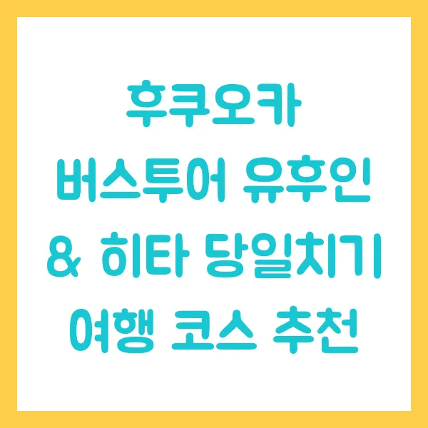 후쿠오카 여행 계획 중이신가요? 🤔 후쿠오카 근교의 숨은 보석, 유후인과 히타를 당일치기로 둘러보는 알찬 버스투어 코스를 소개할게요! 일본 소도시의 매력에 푹 빠지고 싶다면, 벳푸 대신 유후인 & 히타에 집중하는 코스를 강력 추천! 자유여행과 패키지의 장점만 쏙쏙 골라 담은 버스투어 후기, 지금 바로 확인하세요!✨