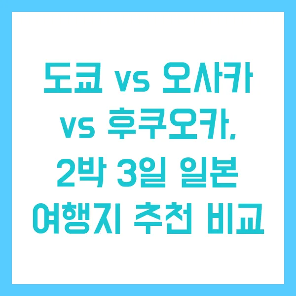 일본 2박 3일 여행, 어디로 갈지 고민이시죠?! 도쿄, 오사카, 후쿠오카! 각 도시의 매력을 꼼꼼히 비교 분석해 드릴게요. 쇼핑, 먹방, 온천, 테마파크까지! 취향 따라 찰떡 여행지를 선택하는 꿀팁 대방출~! 나에게 맞는 최고의 일본 여행지를 찾아보세요!✈️